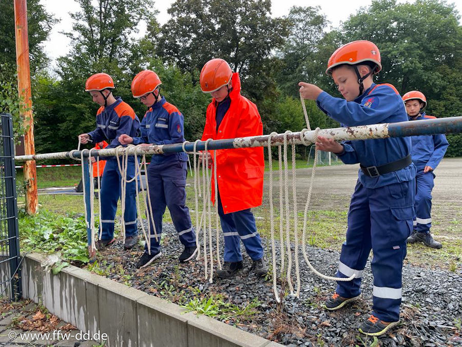 Hierbei mussten 4 Disziplinen bewältigt werden, welche wir in den Wochen vorher natürlich ausgiebig übten. Wir als Jugendfeuerwehr Dürrröhrsdorf-Dittersbach stellten zu diesem Wettbewerb 2 Mannschaften - eine in der Wertungsgruppe 2 und eine in der Wertungsgruppe 4. Auch wenn das Wetter an diesem Tag sehr launisch und dynamisch war, gaben wir unter vollem Körpereinsatz unser Bestes und konnten so mit unseren beiden Mannschaften in den entsprechenden Wertungsgruppen jeweils den 6. Platz belegen.