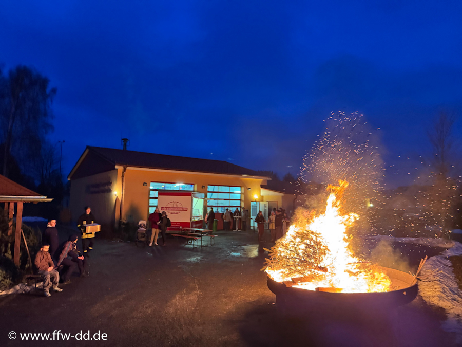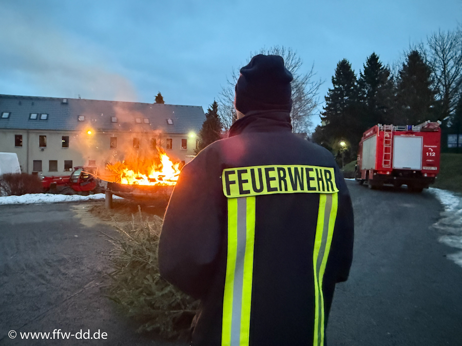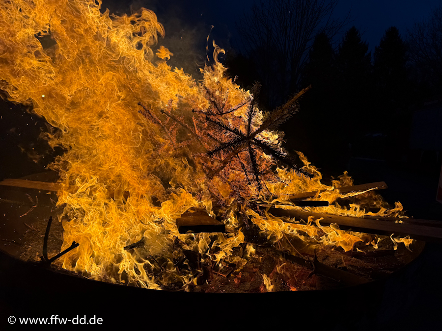 17. Januar 2026Zum zweiten Mal fand das diesjährige Weihnachtsbaumverbrennen am Gerätehaus der Feuerwehr Dürrröhrsdorf-Dittersbach statt. Dabei wurden die ausgedienten Weihnachtsbäume wieder in unserer XXL-Feuerschale verbrannt.