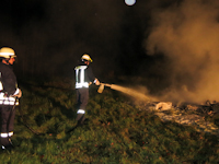 13. Dezember 2014 | 23:53Kurz vor Mitternacht wurden die Kameraden unter dem Einsatzstichwort "Brand klein am Klärwerk" alarmiert. Am Einsatzort, an der ehemaligen Wanderhütte an der Kläranlage, brannte ein Sperrmüllhaufen.