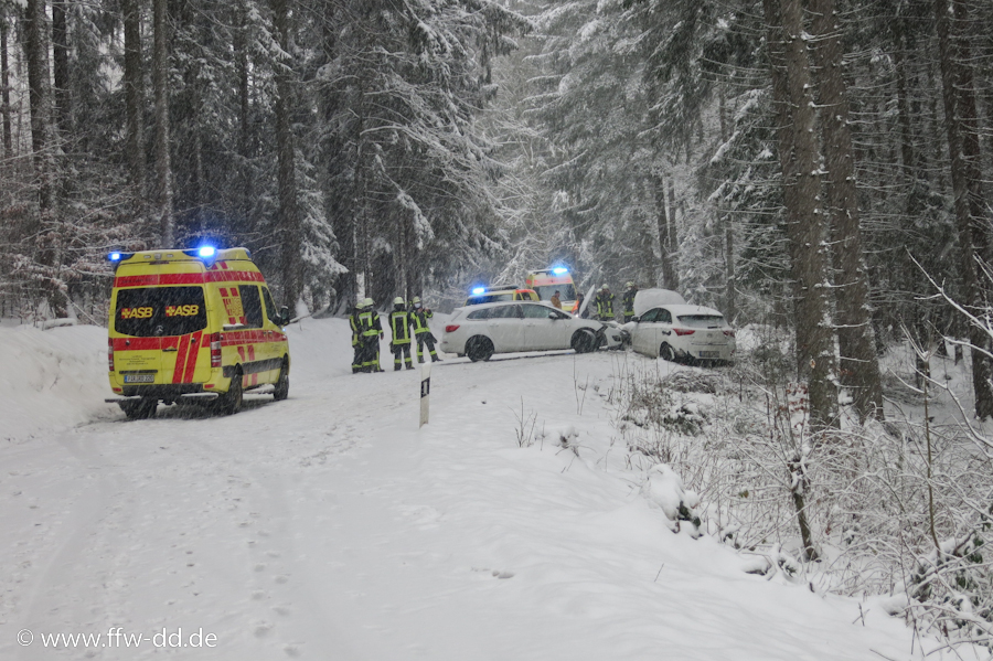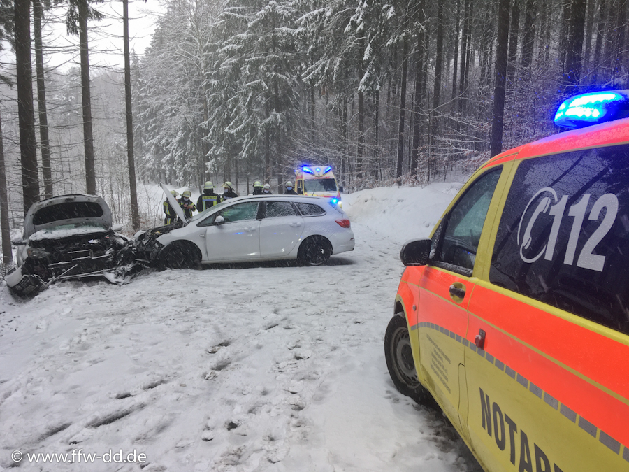 Diese Lage bestätigte sich so am Einsatzort auf der Wünschendorfer Straße. Die verletzten Personen wurden bereits durch den anwesenden Rettungsdienst betreut. Die Aufgabe der Feuerwehren war es dabei die Batterien an den verunfallten Fahrzeugen abzuklemmen sowie die Unfallstelle abzusichern. Nach dem Abtransport der Patienten wurde die Fahrbahn durch den Winterdienst beräumt. Im Anschluss konnte die Wehr wieder aus dem Einsatz entlassen werden.