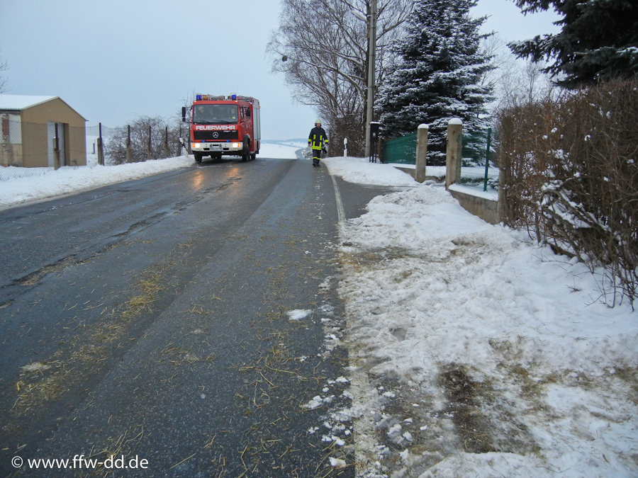 13. März 2013 | 17:15Fast genau 24 Stunden nach dem letzten Einsatz wurden die Kameraden der Dürrröhrsdorf-Dittersbacher Wehr erneut zur technischen Hilfe gerufen. Unter dem Einsatzstichwort "Gefahr durch Strohballen auf Straße" wurde auf die Eschdorfer Straße nach Dittersbach ausgerückt.